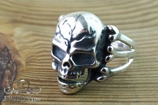 На фото изображёно мужское серебряное кольцо с черепом из серебра 925 пробы.
