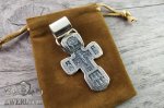 Изображено на кресте: Распятие Христово. Святая Троица. Святой Николай Чудотворец. Мученик Трифон. Три святителя. Икона Божией Матери "Толгская". Ангел Хранитель. Преподобный Сергий Радонежский. Святой Спиридон Тримифунский.1. Размер: 7 х 4 мм
