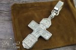 Изображено на кресте: Распятие Христово с предстоящими. Святая Троица. Архангел Михаил. Святые Воины. Тихвинская икона Божией Матери. Православный серебряный крест с чернением.Высота: 8 мм