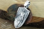 На фото изображён серебряный кулон с Архангелом Михаилом.