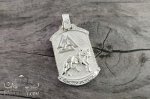 На фото показана двусторонняя серебряная подвеска-кулон с волком с одной стороны и и "Древом жизни" с другой стороны, амулет из серебра 925 пробы на шею.