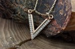 На фото показан женская золотая подвеска - буква "V", золото 585 пробы с белыми камнями (фианиты).