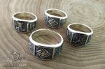 Авторский мужской перстень из серебра без камней со славяно-арийскими символами. На данном кольце изображены символы "Небесный Вепрь", "Одолень-трава" и "Духовная сила".